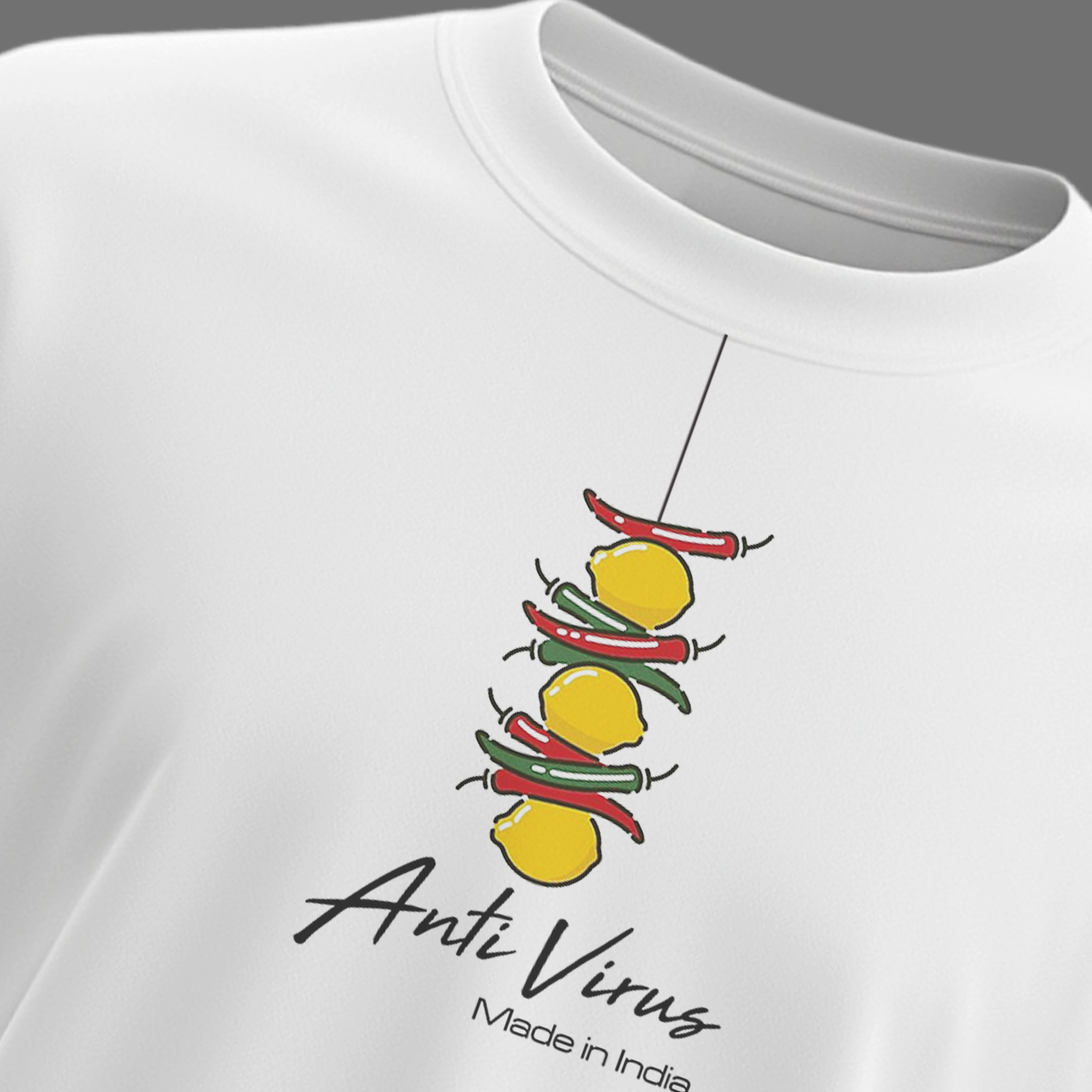Shop the Anti Virus Unisex T-Shirt at kloch.in. Featuring the iconic nimbu-mirchi design, this stylish tee blends Indian heritage with modern streetwear. Made in India.