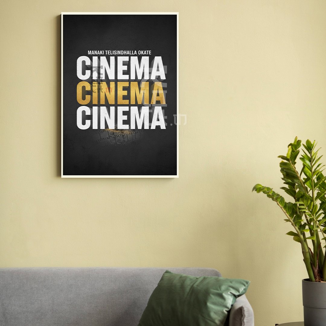 Cinema Cinema Cinema A3 wall poster for Telugu cinema lovers. Printed on 300 GSM art board with fade-proof OEKO-TEX inks. Shop now.