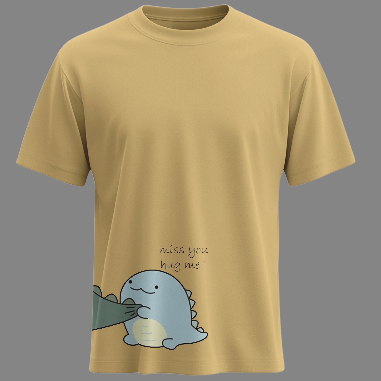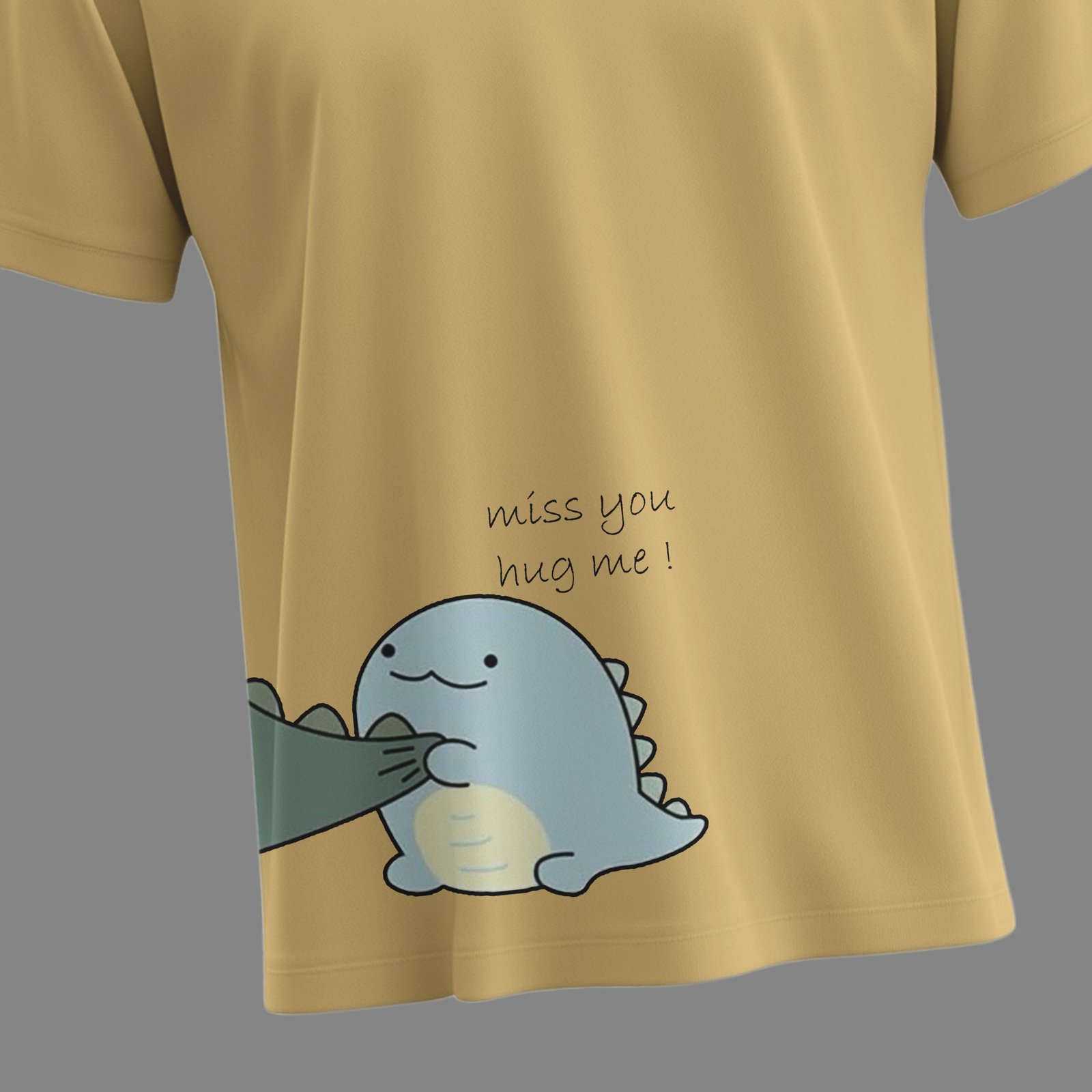 The Dino Hug Couple T-Shirts bring that warmth to life with adorable dinosaur illustrations and playful text that completes the story when worn together. One tee says “What are you doing?” while the other replies “Miss you, hug me!” — making this set irresistibly cute and expressive.