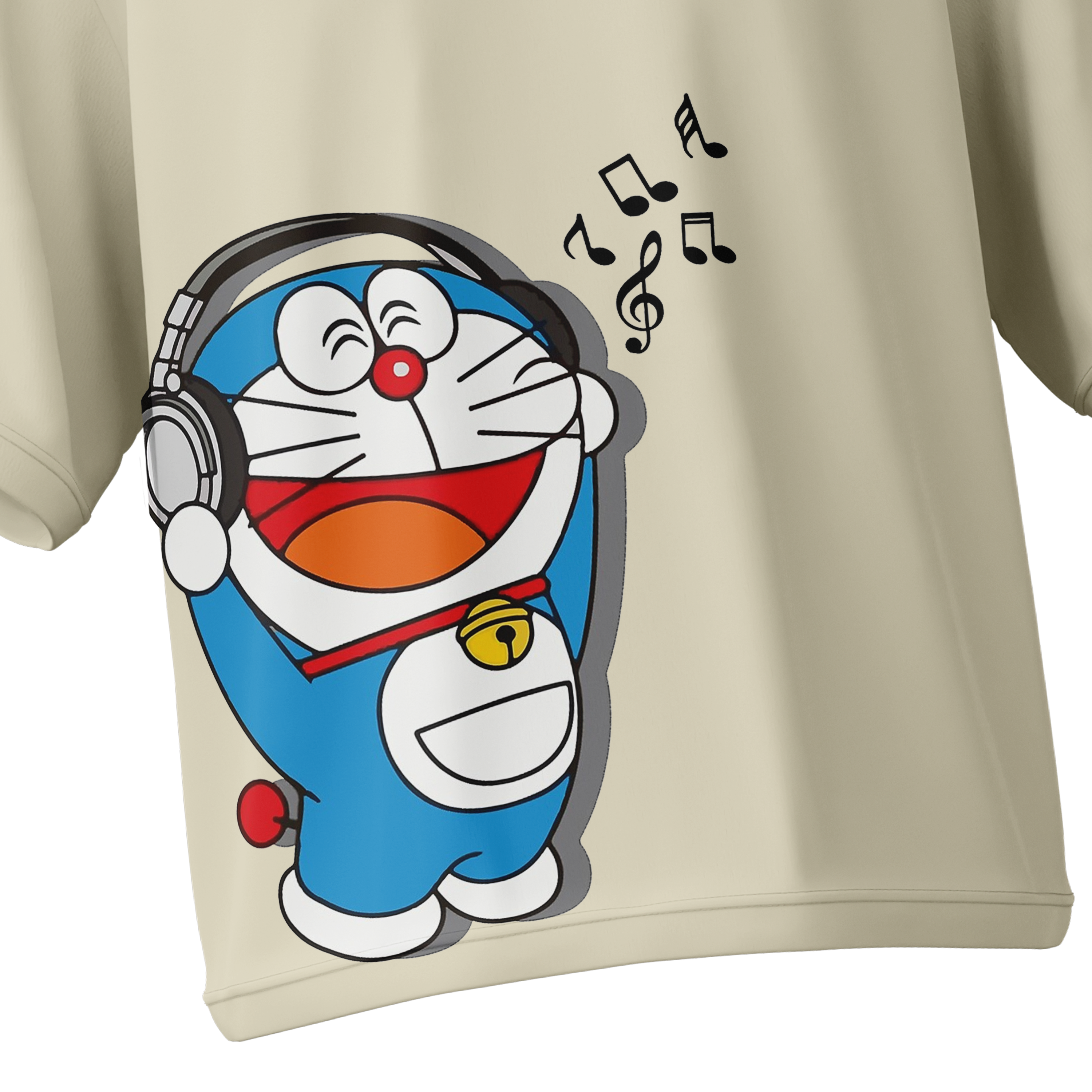 Buy the Doraemon Music Vibes Off-White Oversized T-Shirt at Kloch.in. Premium 180 GSM cotton, unisex oversized fit, anime-inspired graphic, perfect for music and cartoon lovers. Shop now!