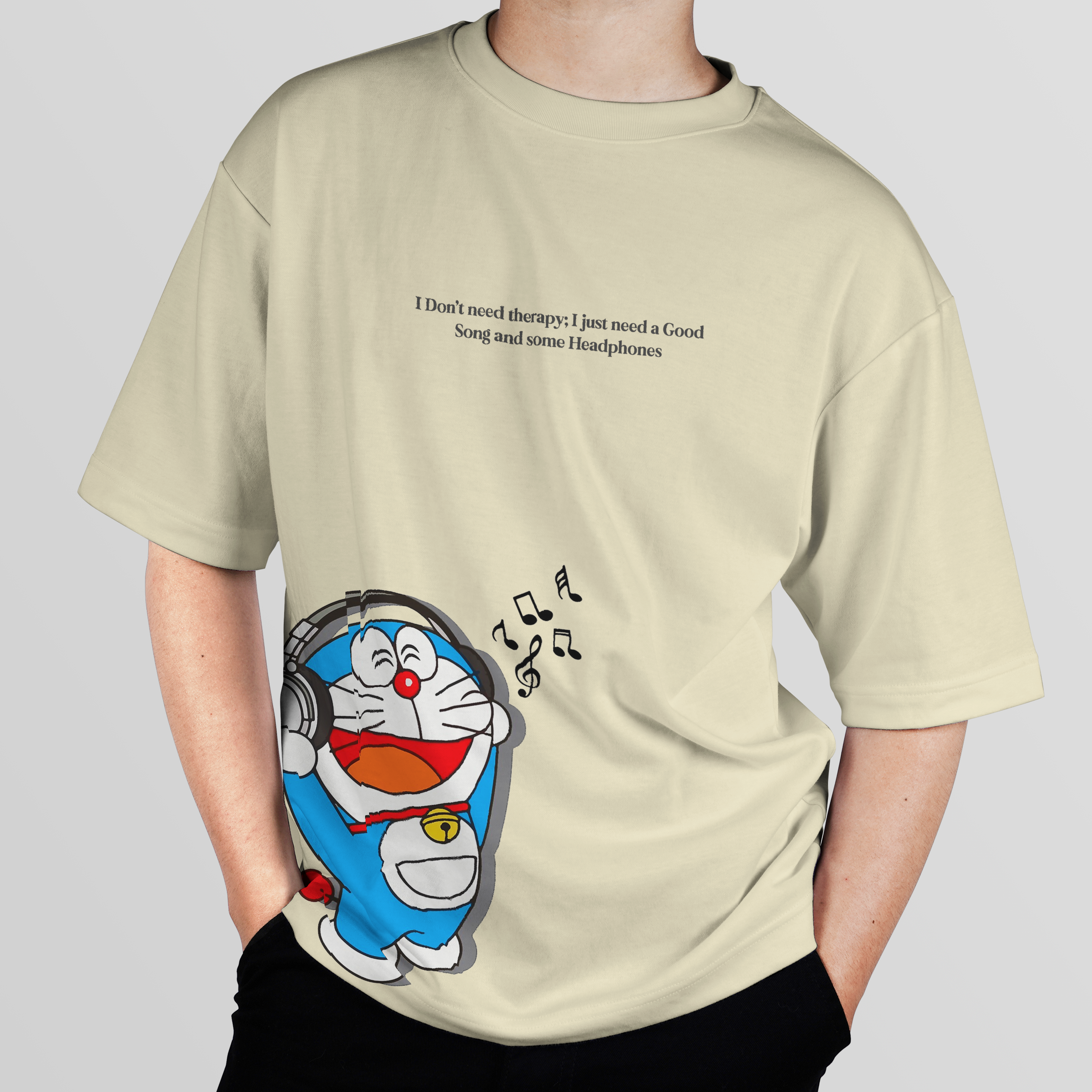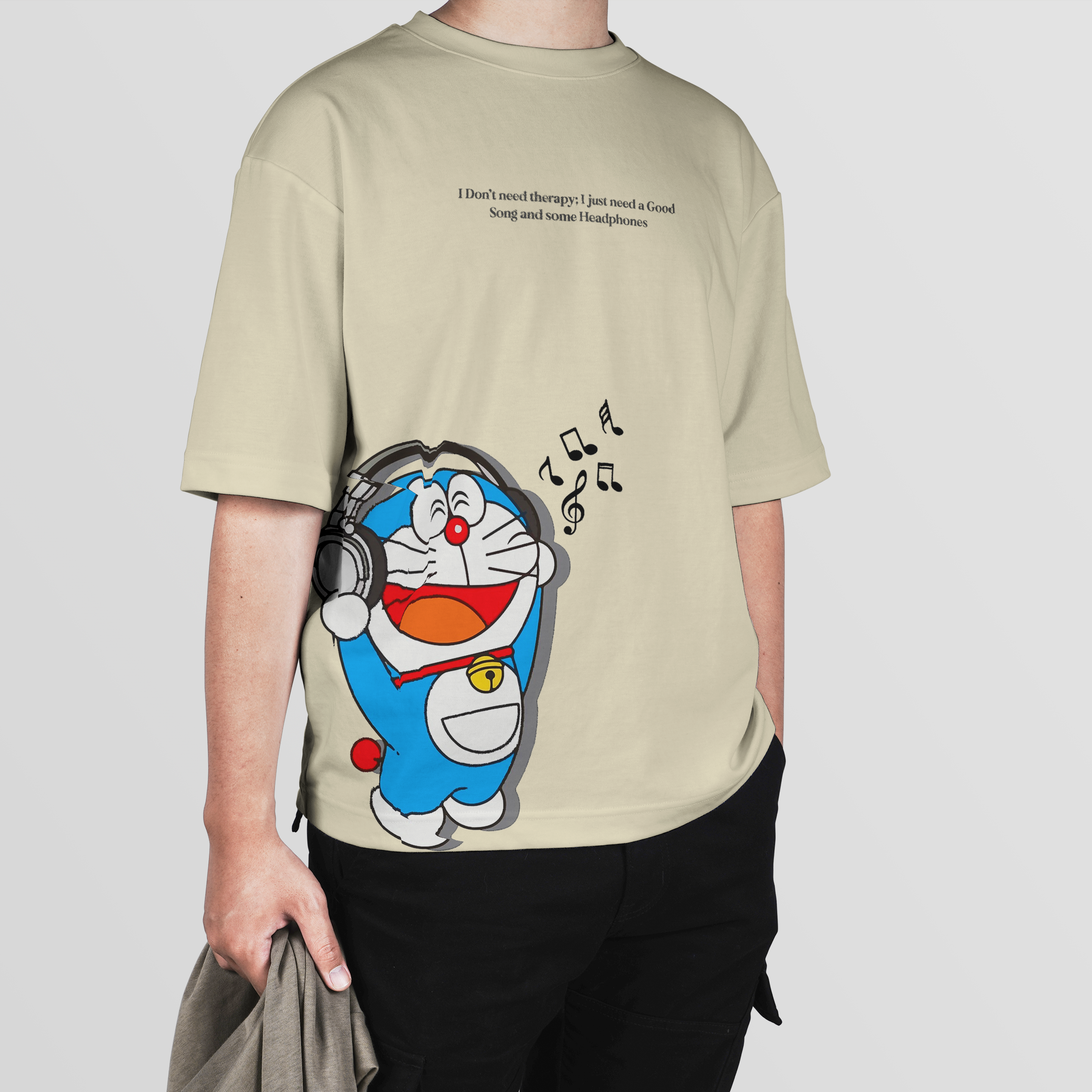 Turn comfort and nostalgia into your everyday style with the Doraemon Music Vibes Unisex Oversized T-Shirt in a clean, aesthetic off-white shade. Featuring a joyful illustration inspired by the iconic character Doraemon vibing to music with headphones, this tee captures the relatable quote: