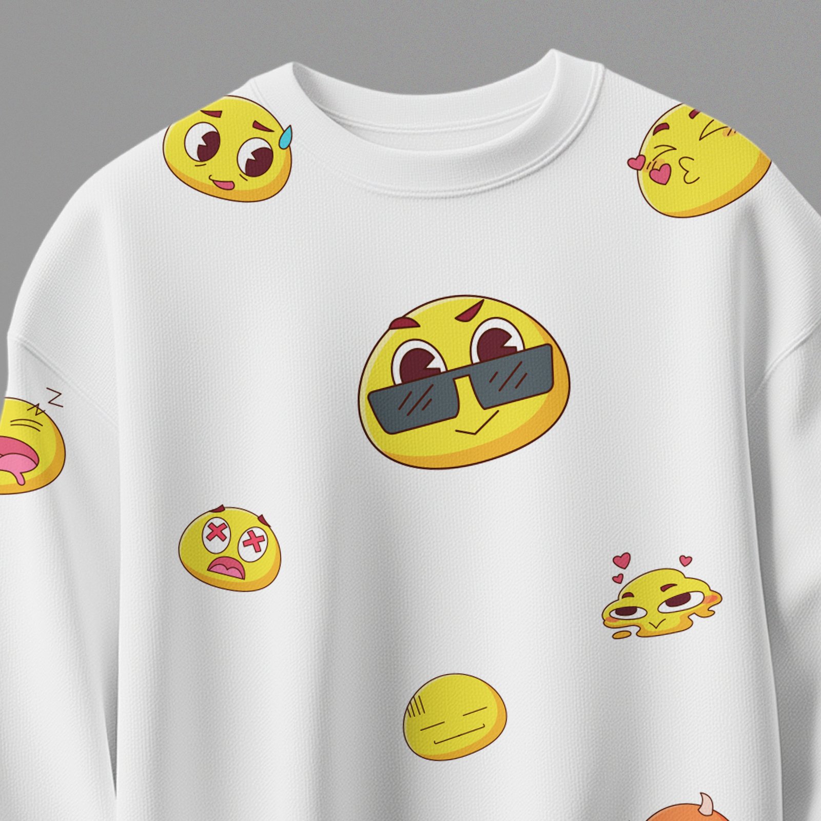Buy Emoji Chaos Unisex Sweatshirt from Kloch. Made with 300 GSM super combed cotton, bio washed and pre shrunk fabric with stylish all over emoji prints.