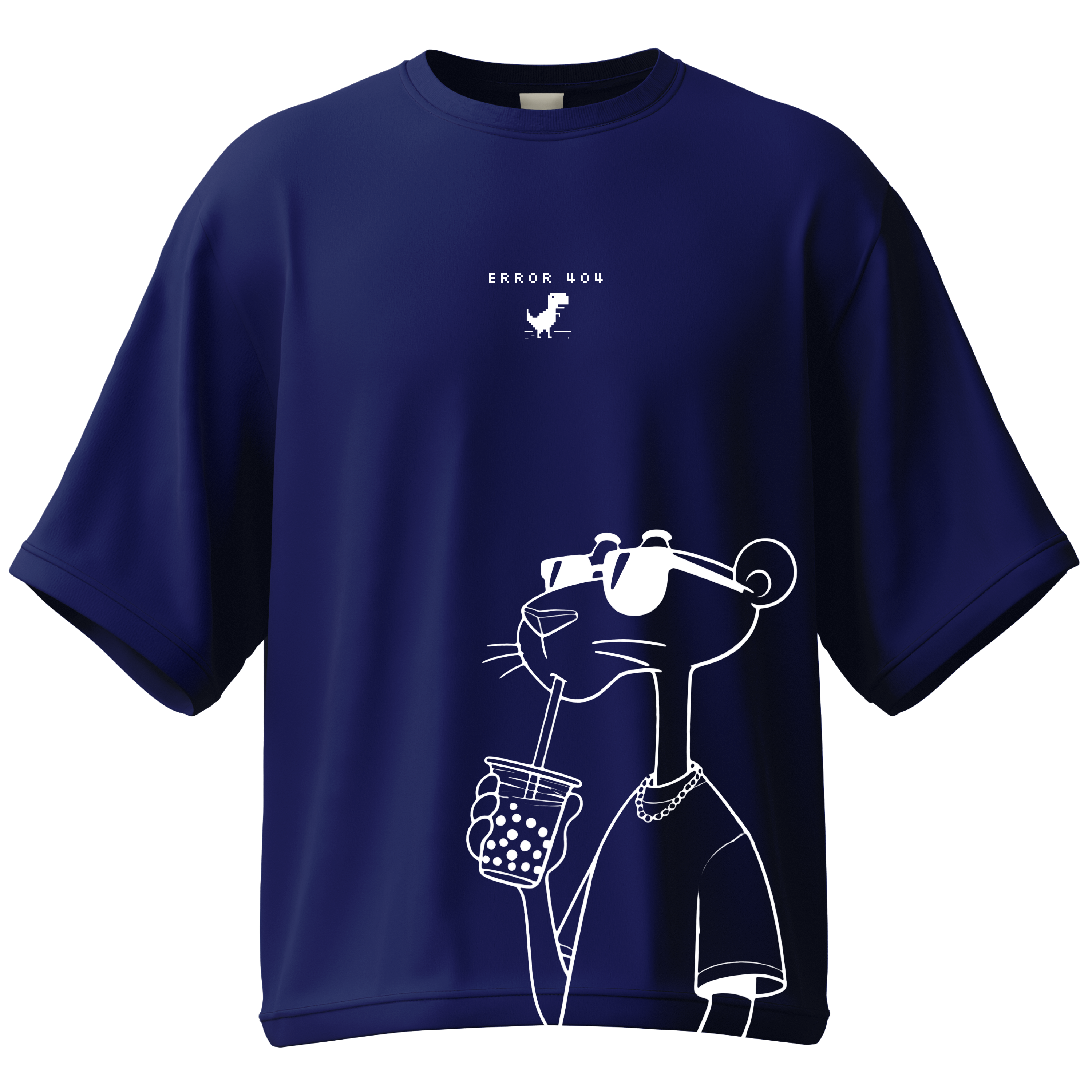 [error 404 t shirt, royal blue oversized tee, unisex oversized tshirt india, quirky graphic tee, panther print tshirt, bubble tea t shirt, streetwear tshirt india, 180 gsm cotton tee, oversized fashion india, klōch tshirts, aesthetic tees india, unisex cotton tee ]