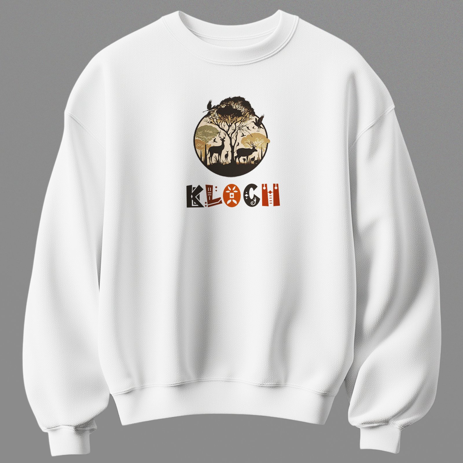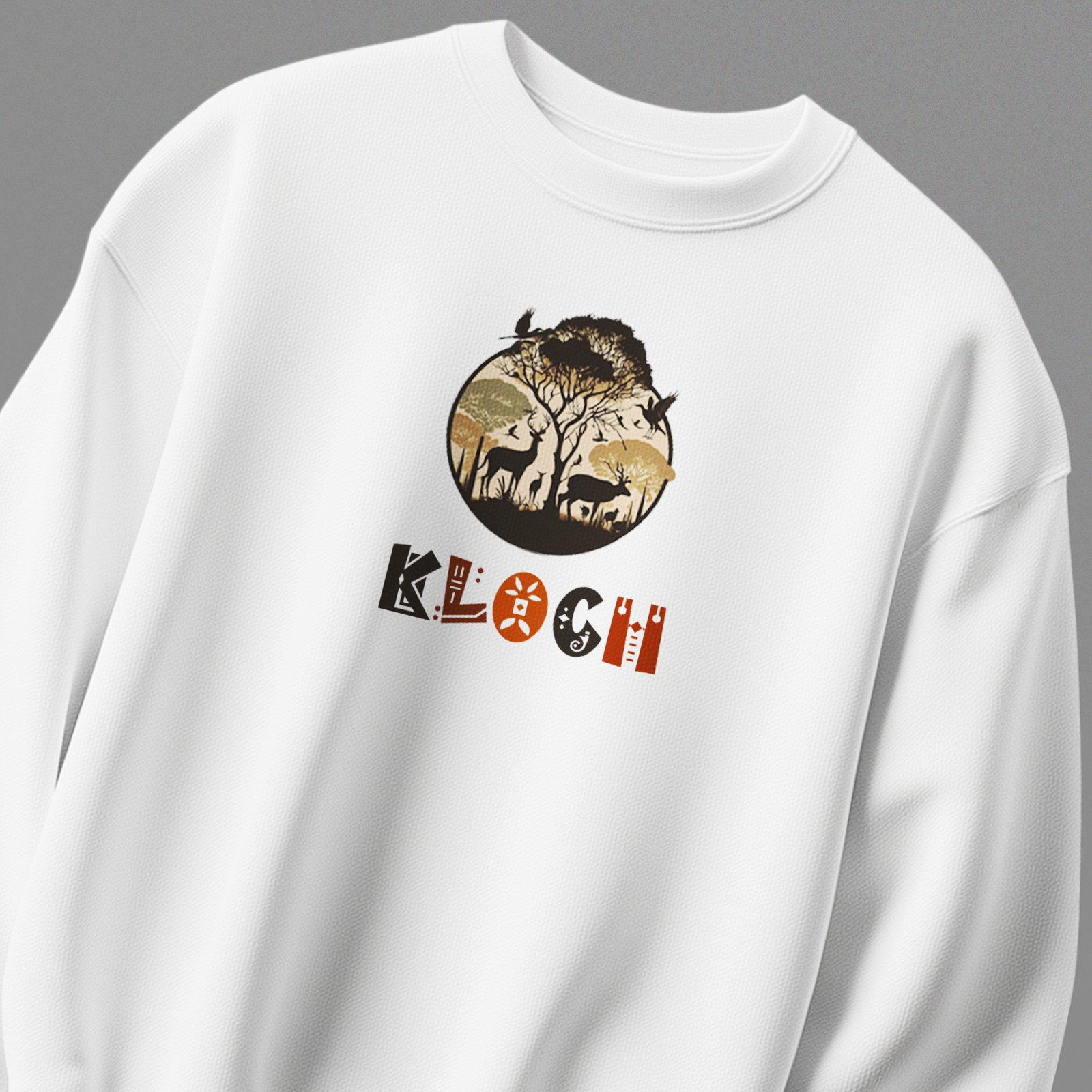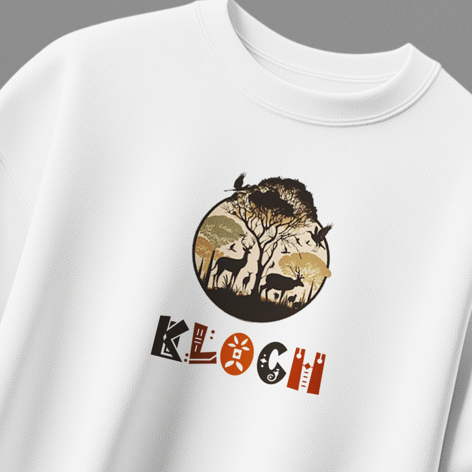 The Forest Lover Kloch Unisex Sweatshirt celebrates nature, wildlife, and conscious living. Featuring a beautifully detailed forest illustration with deer silhouettes and the iconic KLOCH branding, this sweatshirt reflects calm strength, balance, and a deep connection with the wild.