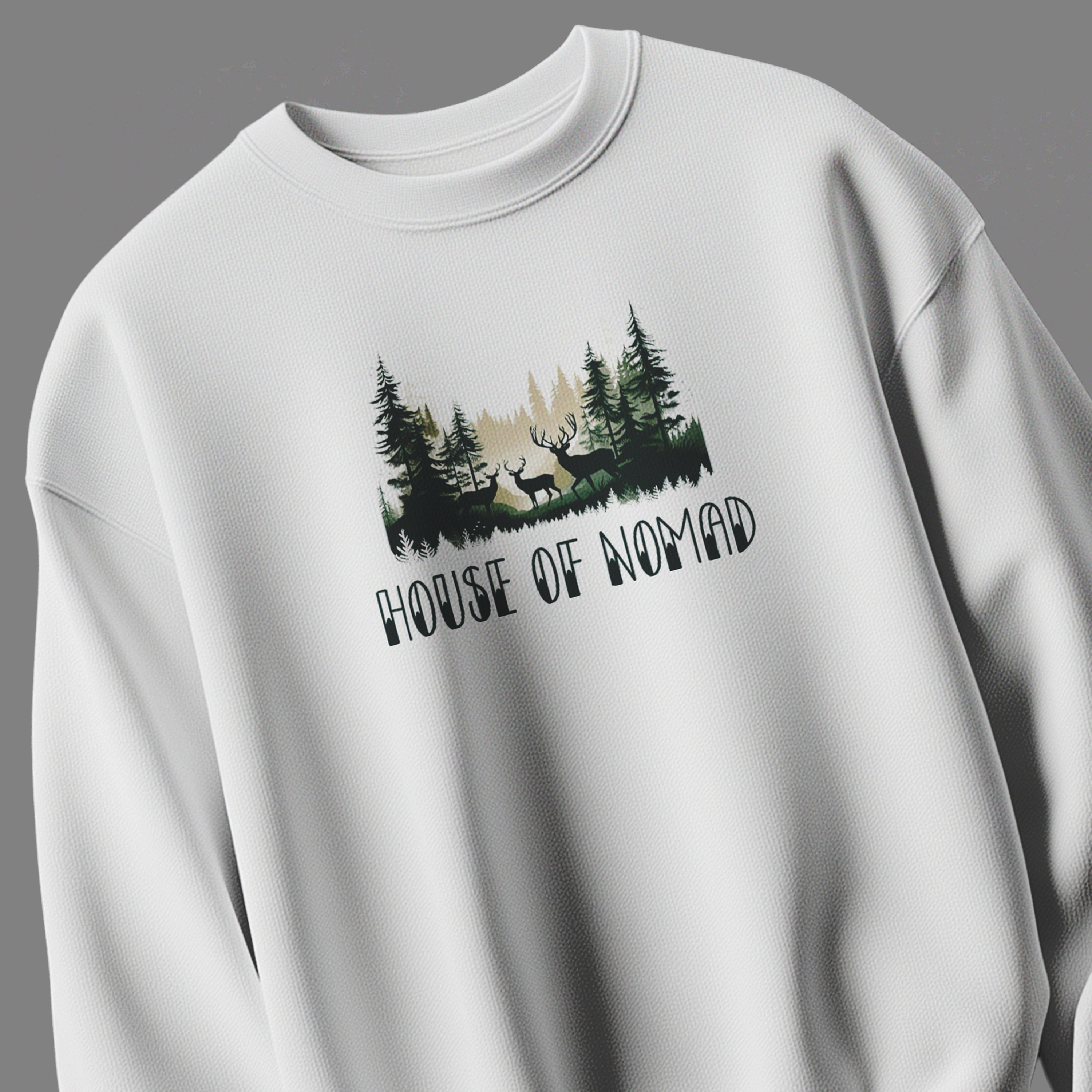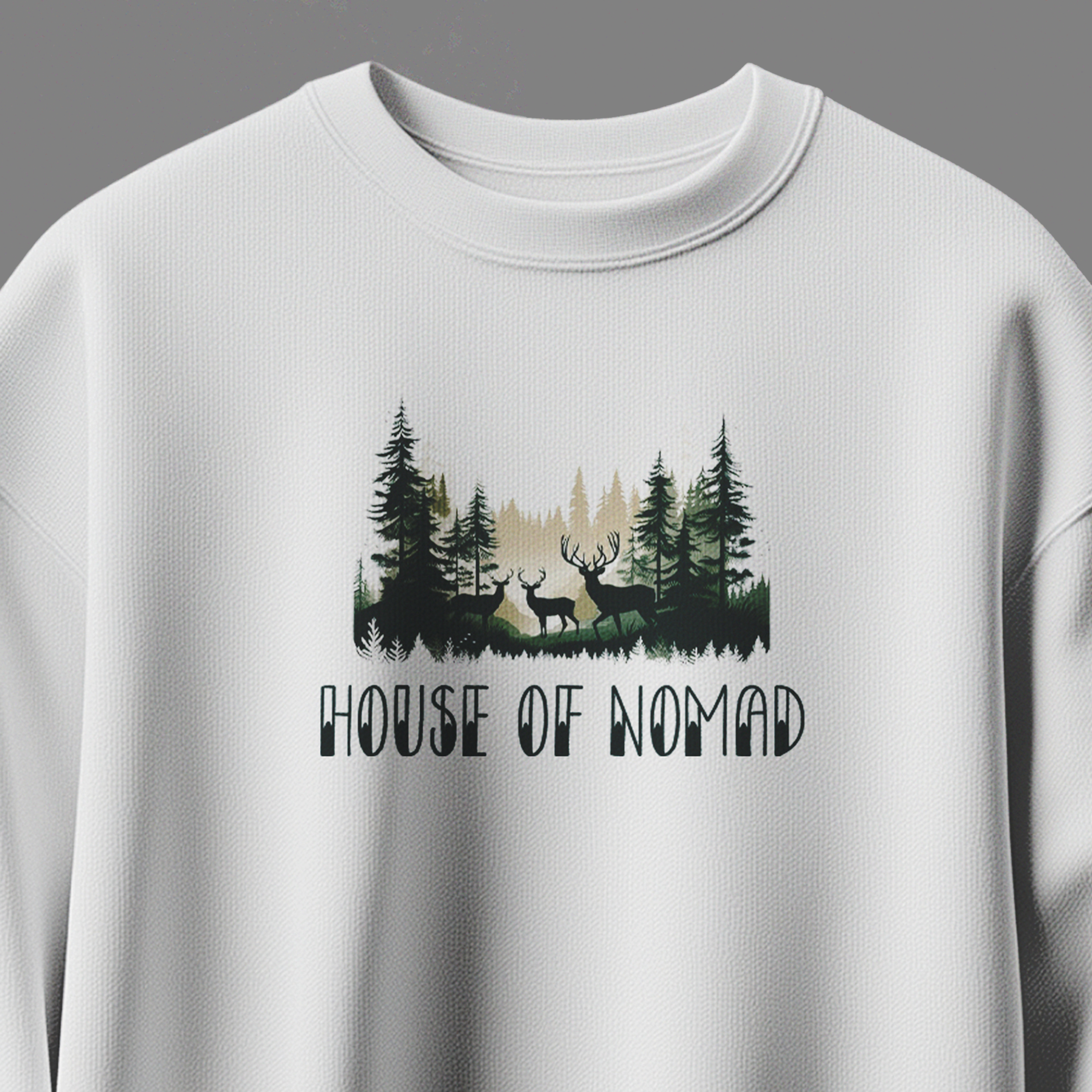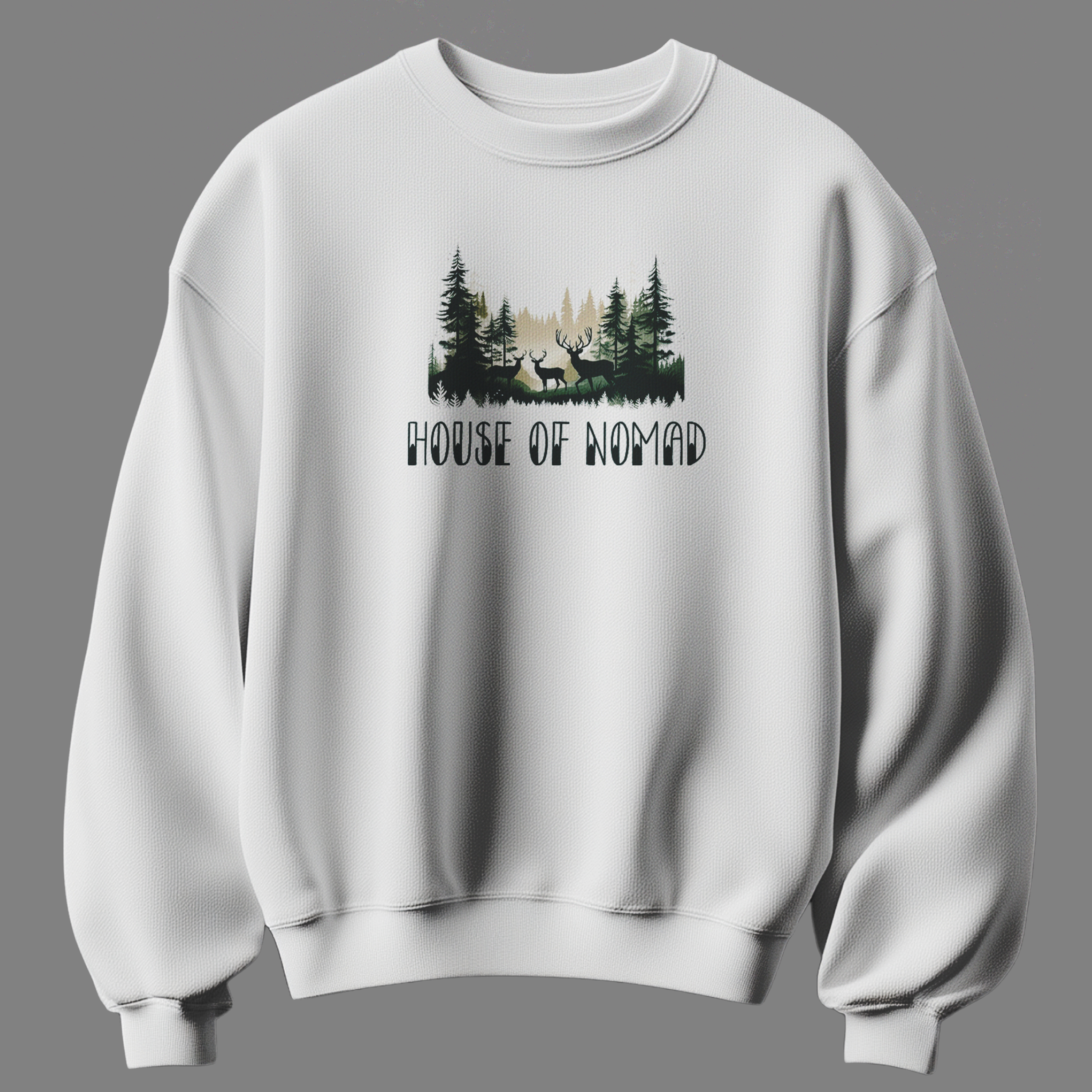 The House of Nomad Unisex Sweatshirt is inspired by wanderers, forest dwellers, and those who feel most alive in the wild. Featuring a serene forest illustration with deer silhouettes and the bold text “House of Nomad”, this sweatshirt reflects freedom, exploration, and a deep connection with nature.