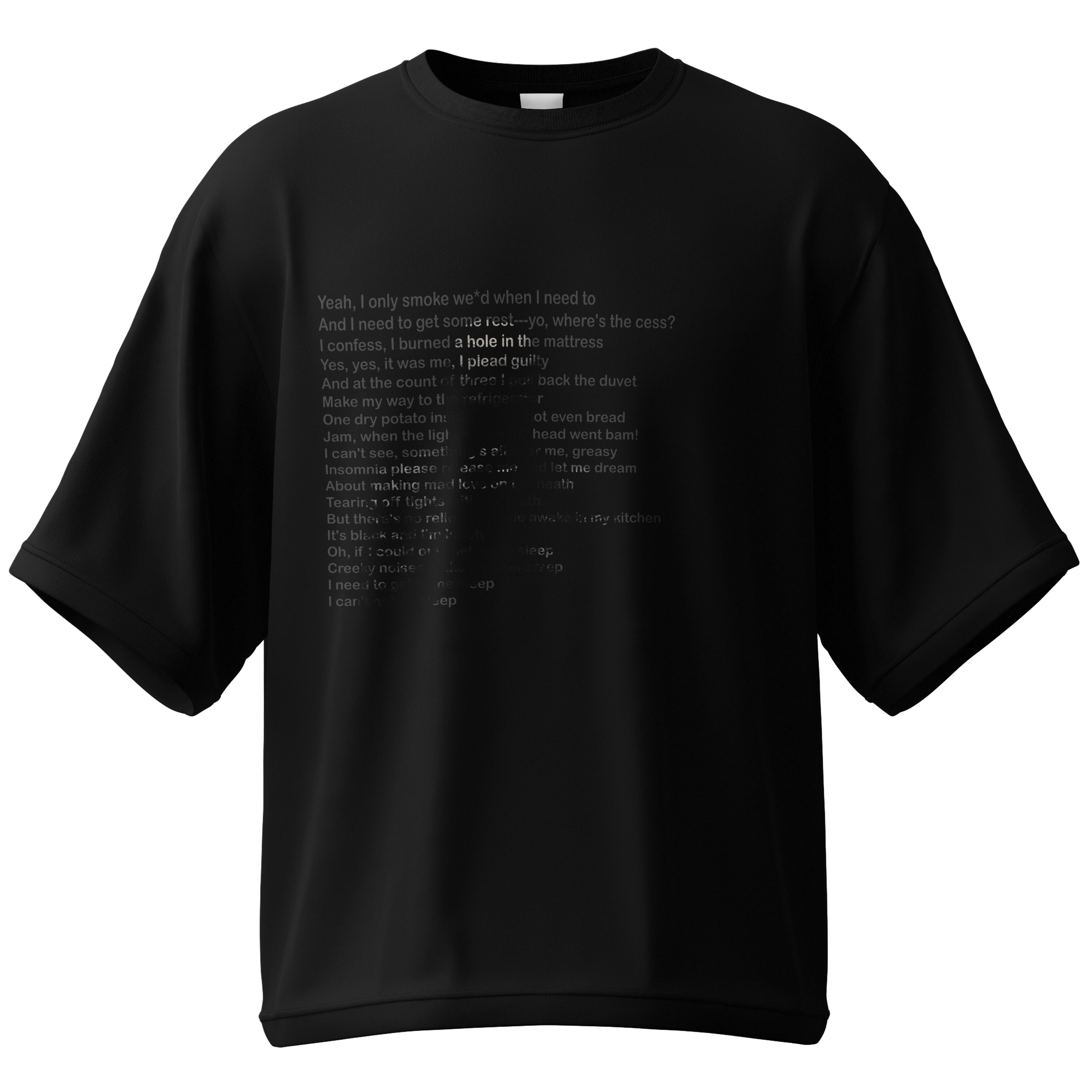 Step into the world of late-night thoughts and moody aesthetics with the INSOMNIA Lyrics Unisex Oversized Tee. Featuring a subtle, tonal text print inspired by an insomnia-themed monologue, this tee is designed for those who vibe with minimalism, depth, and storytelling through fashion.