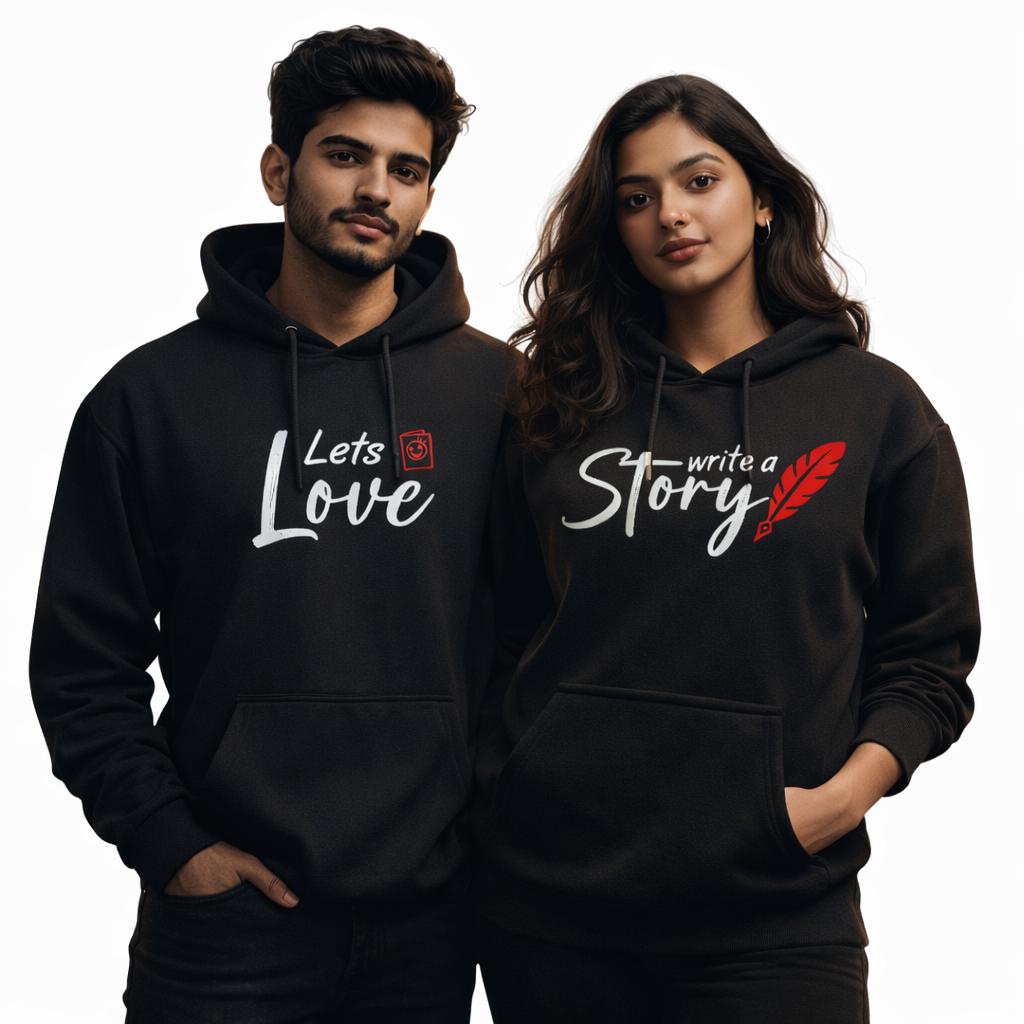 Let’s Write a Love Story couple hoodies made with 300 GSM premium cotton. A Valentine’s Day special hoodie pair that completes one message.