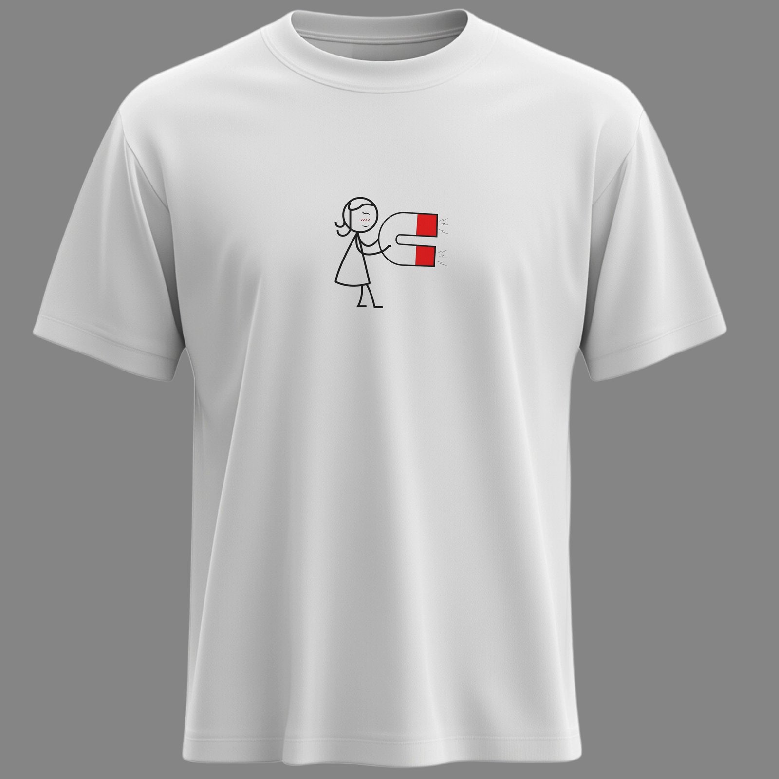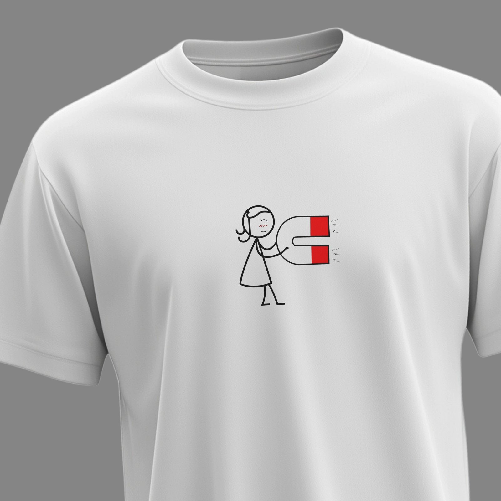 Shop Magnetic Love Couple T-Shirts in white made from 180 GSM 100% cotton. Minimal matching tees for couples and gifting. Available now on Kloch.