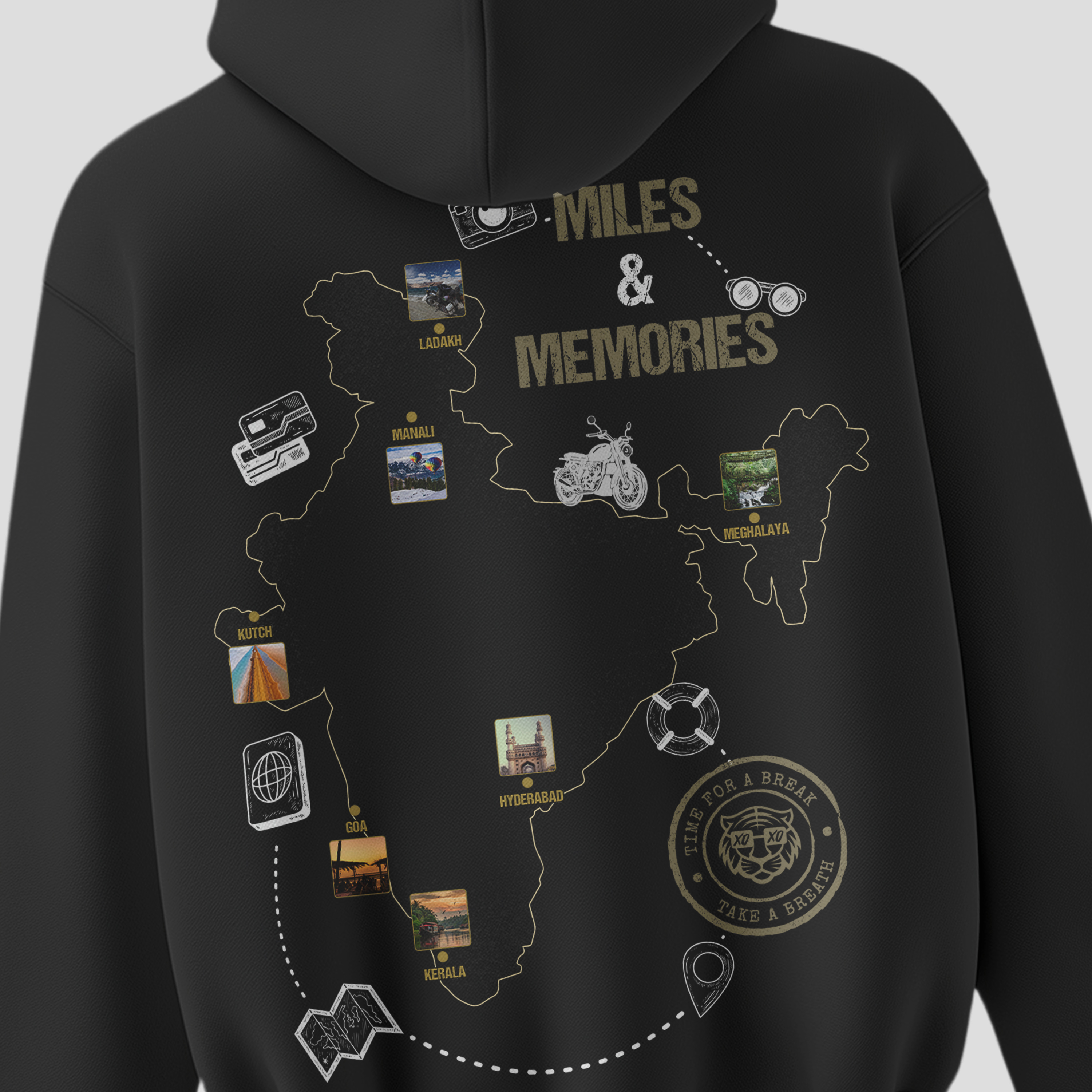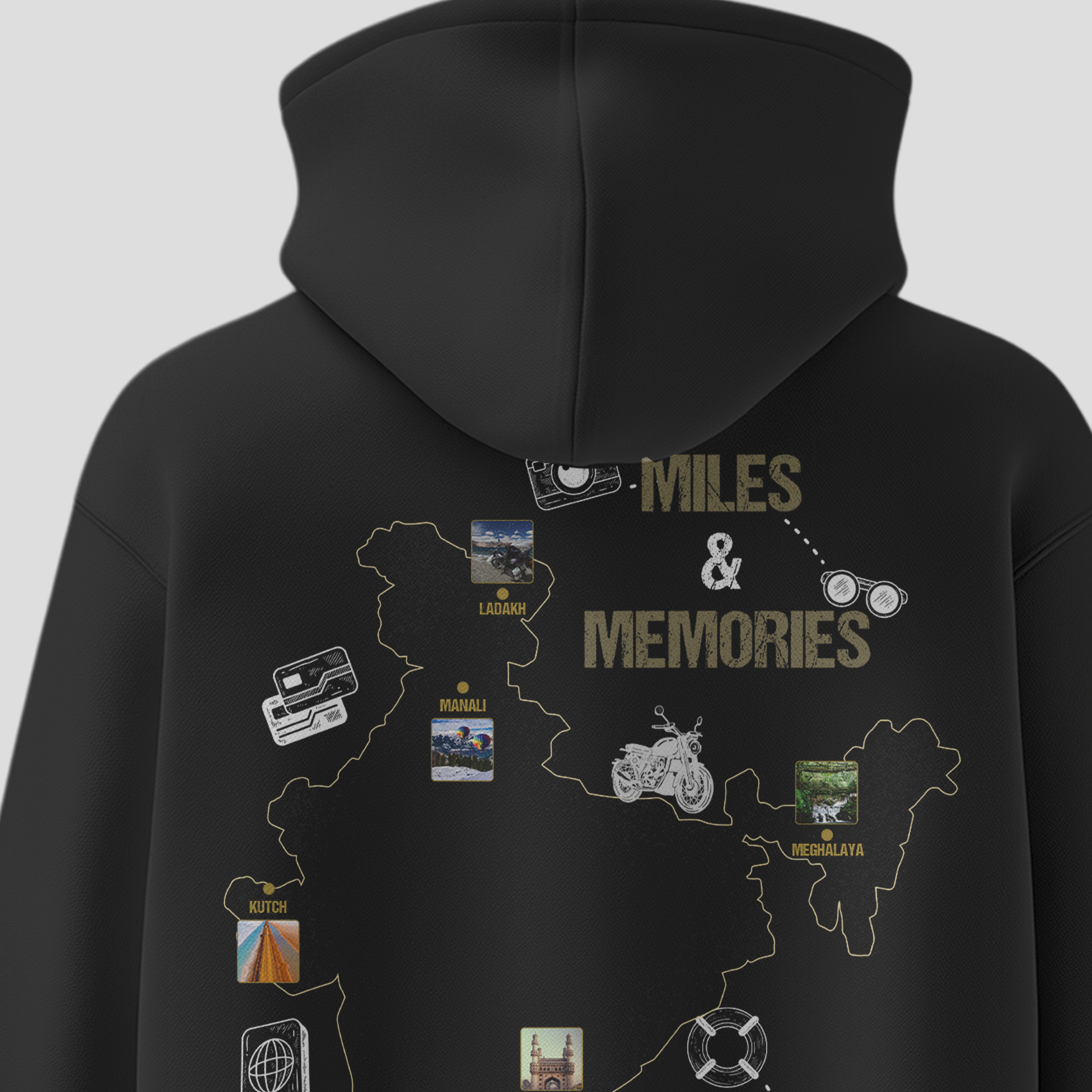 From Ladakh to Kerala, Goa to Meghalaya, each destination is carefully marked and printed based on your selection. Icons, route lines, and travel stamps bring your story to life, while the premium black base keeps the design bold and timeless. Every hoodie is uniquely customized—no two pieces are the same.