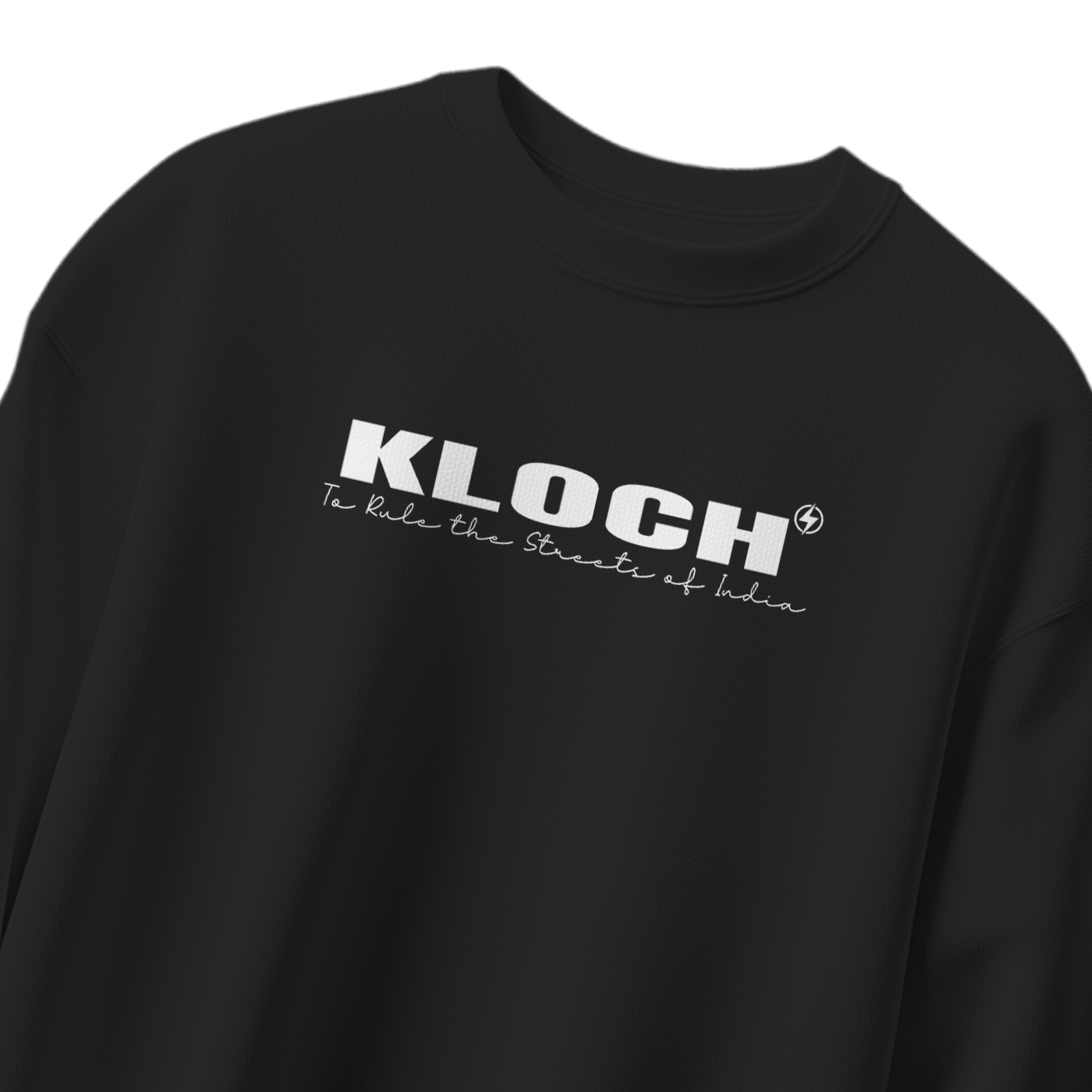 Buy KLOCH Rule the Streets Unisex Sweatshirt made from 300 GSM super combed cotton. Premium black streetwear sweatshirt with iconic KLOCH branding.