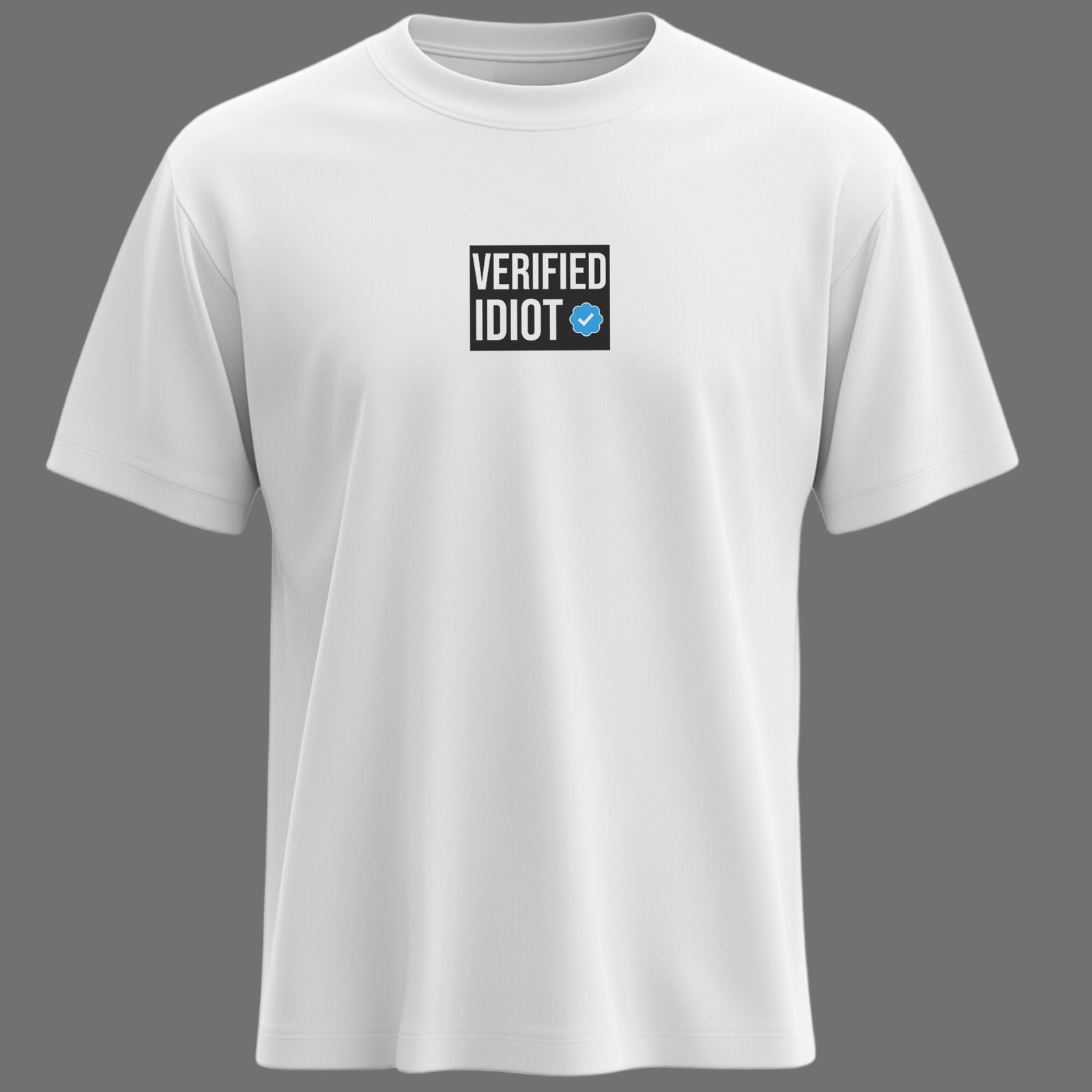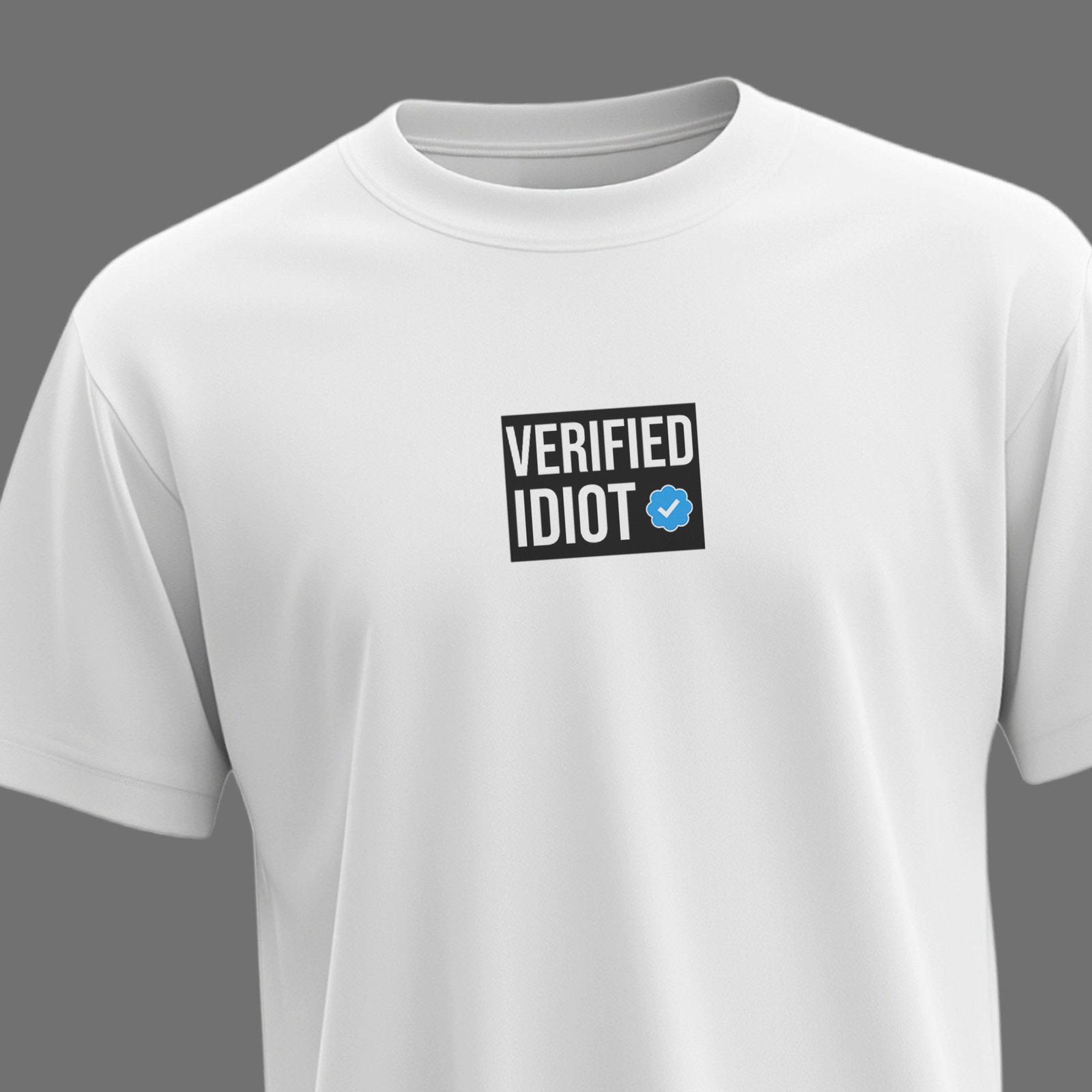 - Bold Design: “Verified Idiot” is printed in white with a blue verified badge for that social media-inspired touch.