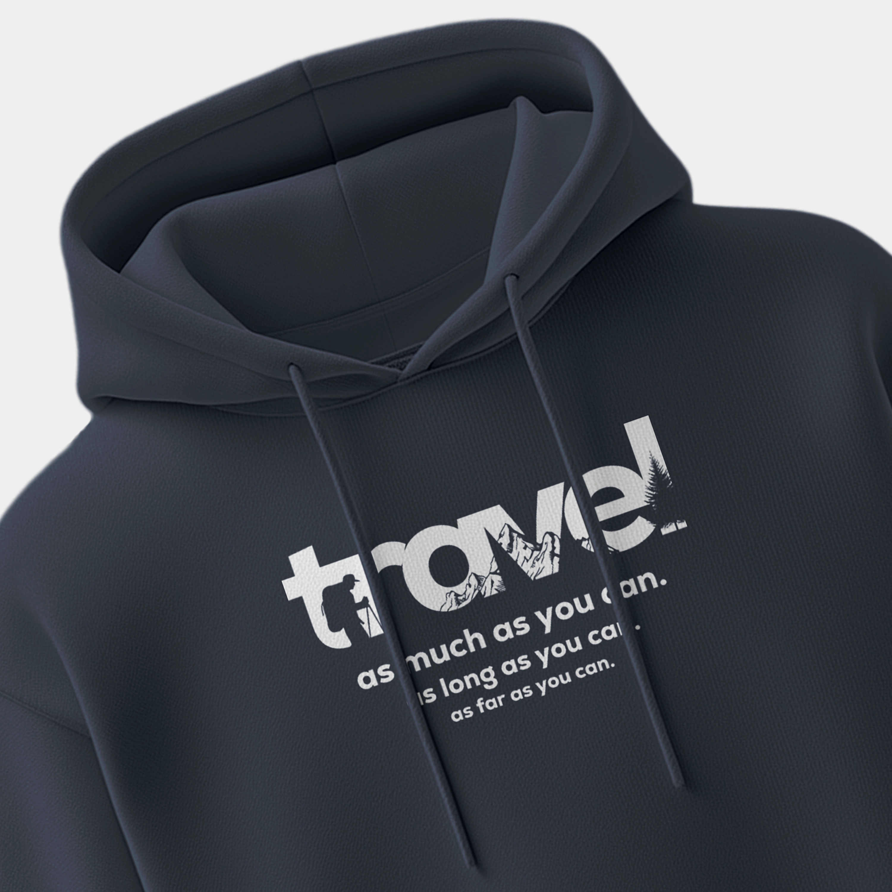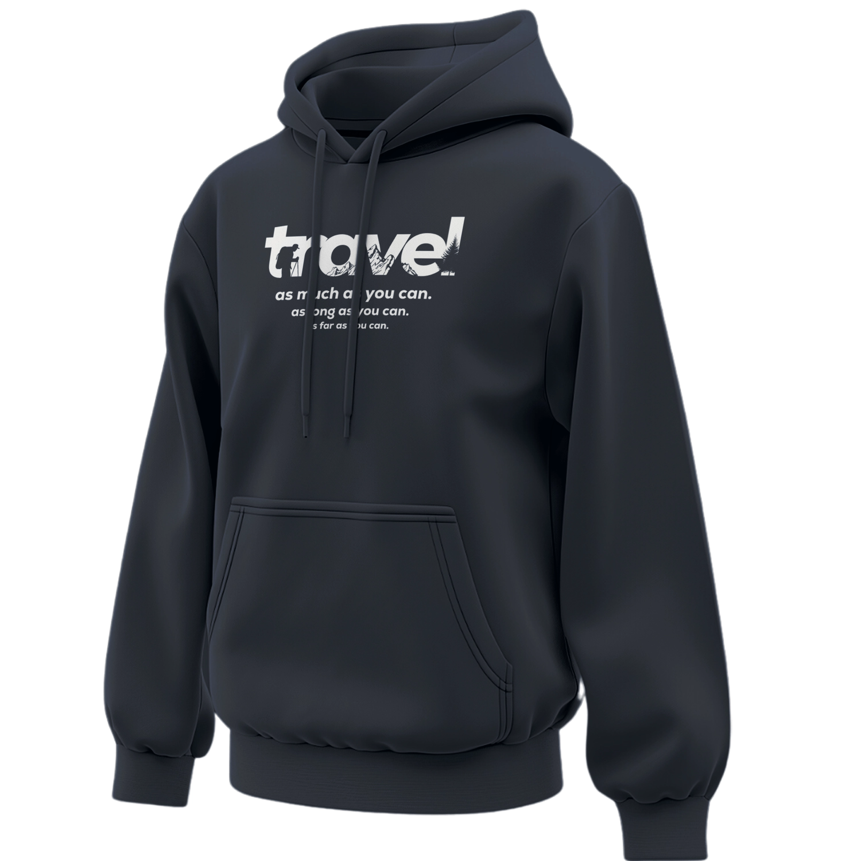 For the wanderer in you, the “Travel As Much As You Can” Unisex Hoodie is a reminder to keep moving, keep exploring, and keep chasing horizons. With a clean and bold travel-themed typography across the chest, this hoodie captures the essence of adventure while delivering unmatched comfort.