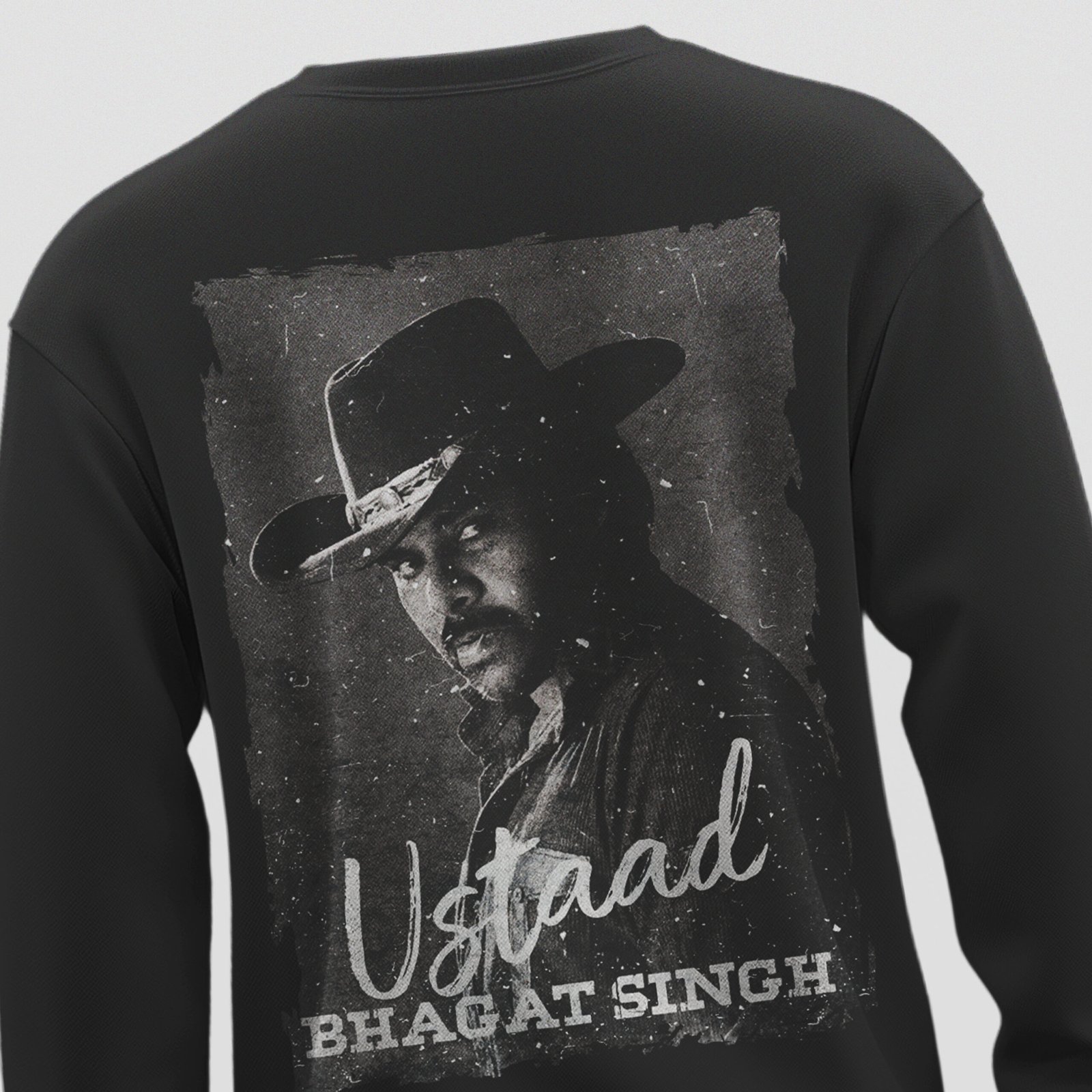 Shop Ustaad Bhagat Singh Black Premium Sweatshirt made with 300 GSM 100% super combed cotton. Heavyweight fanwear inspired by Pawan Kalyan’s upcoming movie.