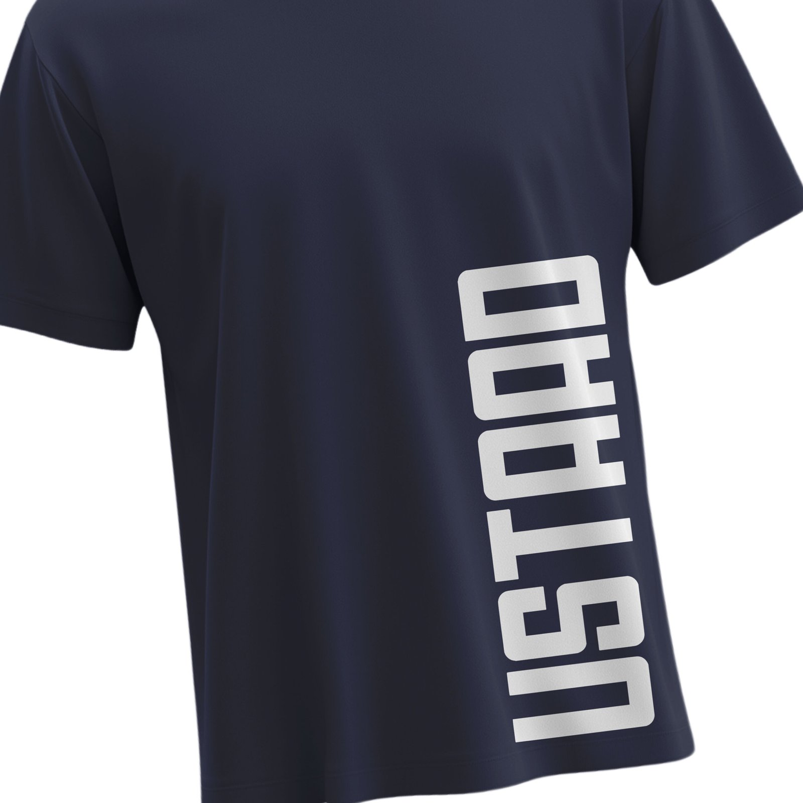 This Ustaad Bhagat Singh Navy Blue Regular Fit T-Shirt features a bold vertical “USTAAD” typography print that captures the attitude and dominance associated with the upcoming movie starring Pawan Kalyan.